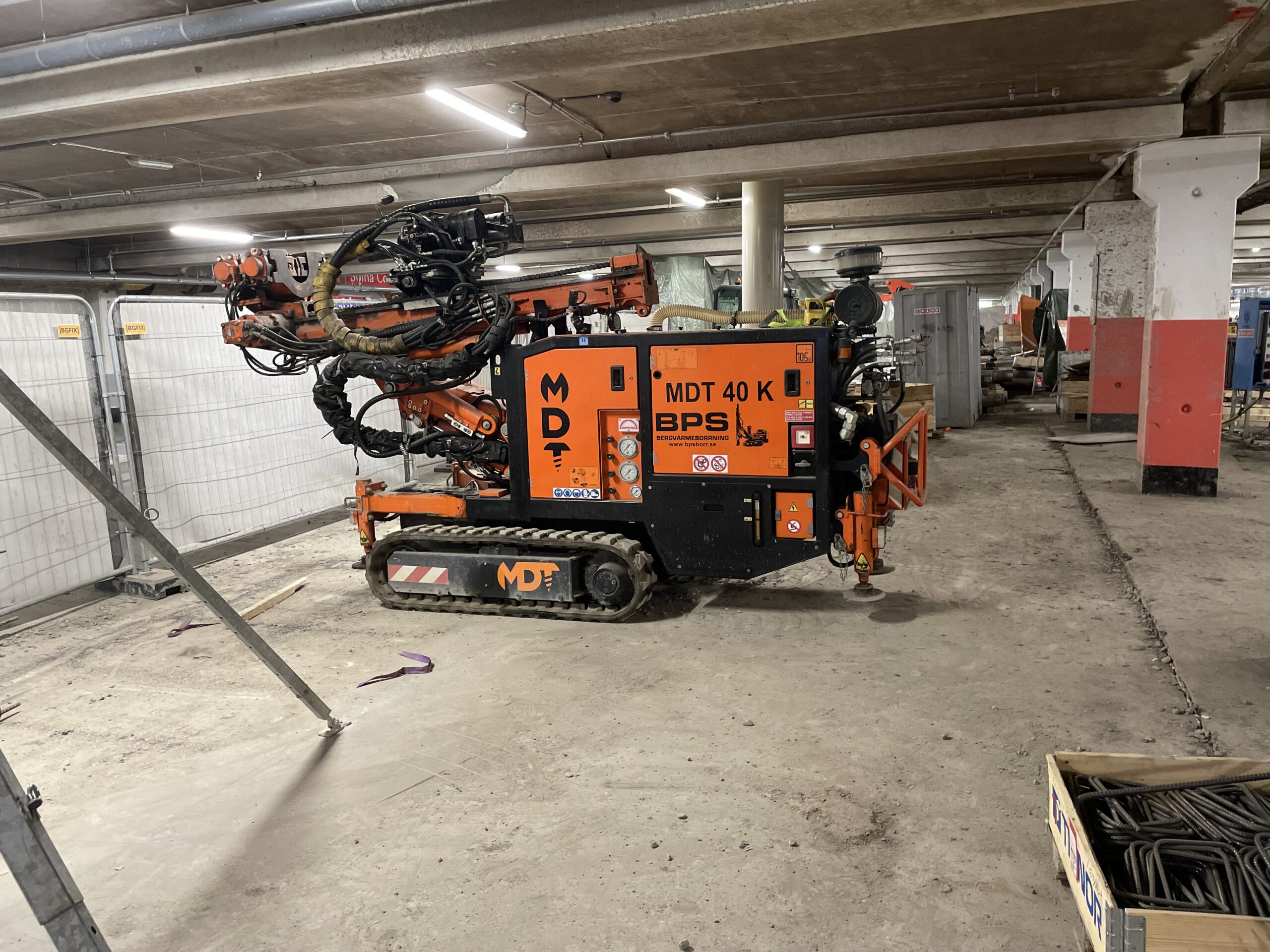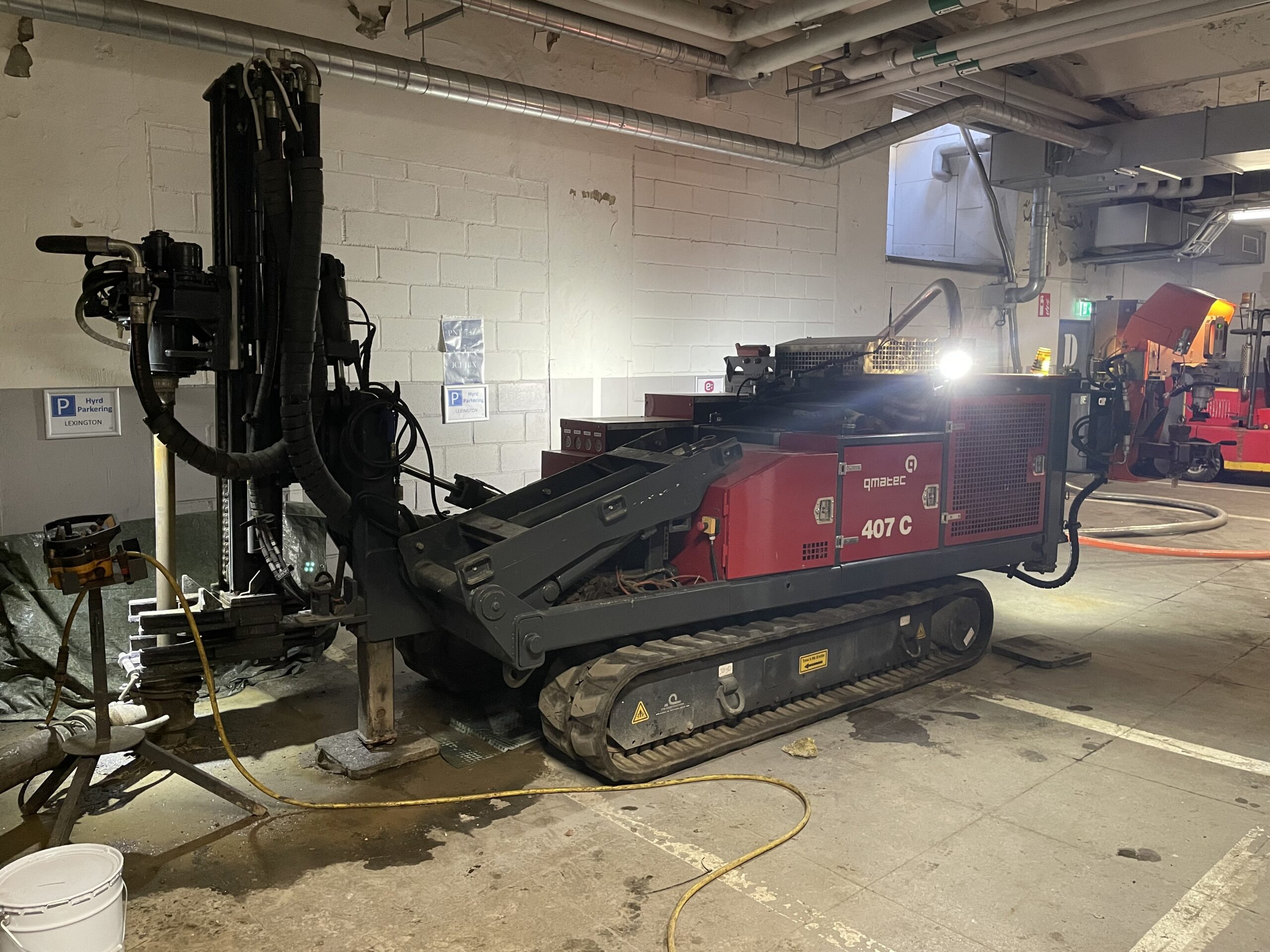 Att borra i ett parkeringsgarage eller källarplan är ett av de mer tekniskt krävande uppdragen inom energiborrning. Låg takhöjd, begränsat manöverutrymme och långa slangdragningar ställer helt andra krav än borrning utomhus – både på utrustningen och på personalen som hanterar den.